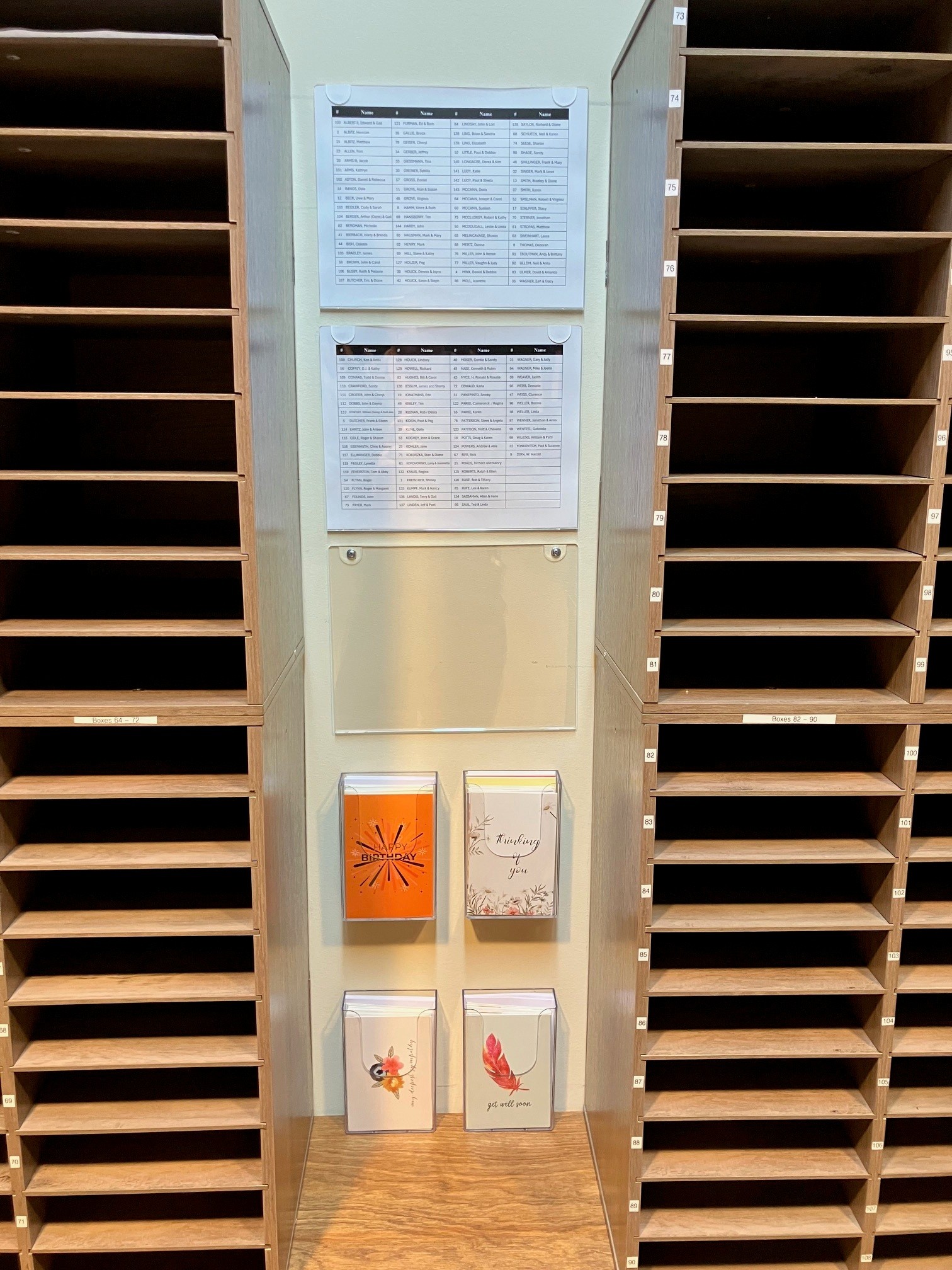 In addition to the new mailboxes, we are also providing a variety of greeting cards that you can use to send a quick note to someone in the congregation. These cards are complimentary and free of charge (of course you can always purchase a card from our Dayspring display in our Chronicles Christian Bookstore). There are cards for Birthdays, General Encouragement, Sympathy, and Healing/Get Well.